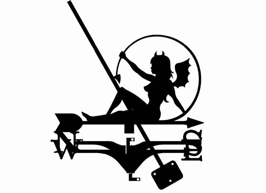 - Флюгарка. Она является поворотной частью устройства, которая указывает направление ветра. Кроме того, флюгарка несет в себе художественную составляющую, определяющую тематику изделия.