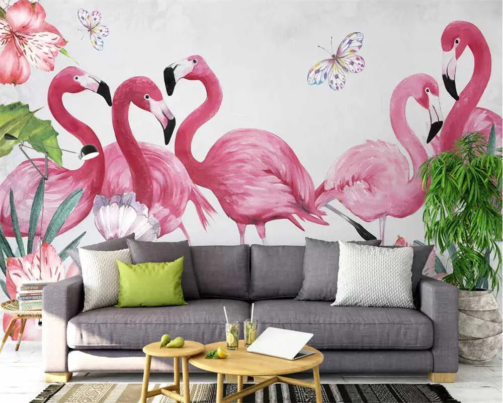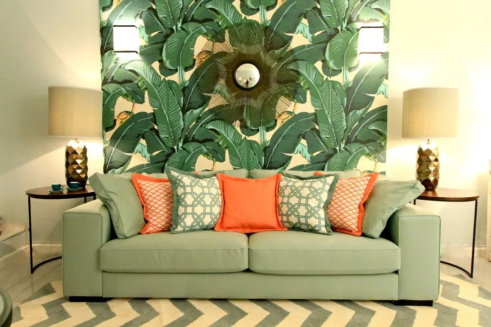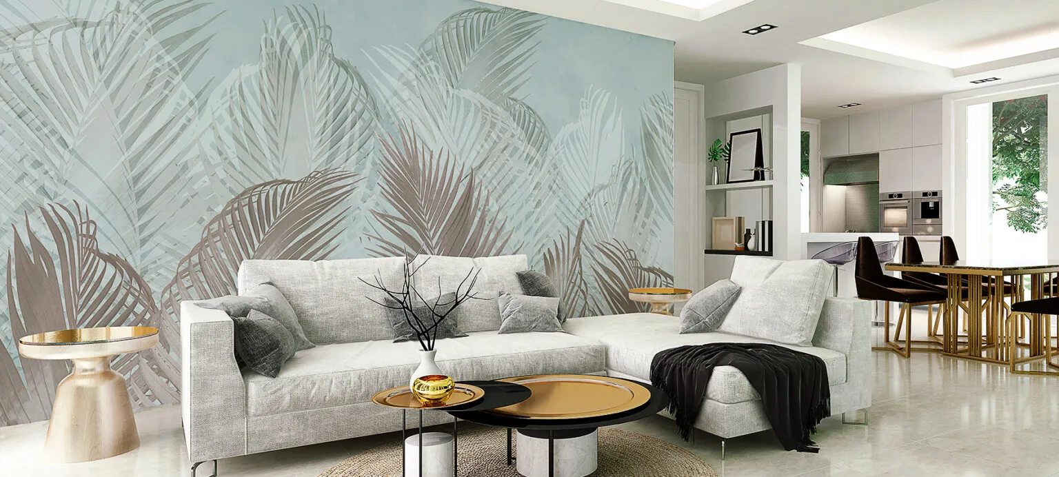 Модной темой этого сезона для современных обоев в гостиную на 2022 год являются тропики. Пальмовые листья, ананасы, фламинго и туканы часто появляются на стенах. Обои с таким декором оживляют интерьер и способствуют расслаблению на диване.