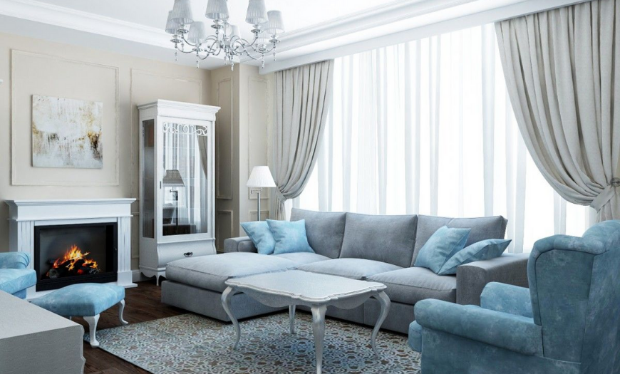 - классический (мебель должна быть выполнена из дерева ценных пород, на ней должны присутствовать элементы с позолотой, резьбой, вставки из ковки, в качестве декоративного текстиля предпочтение отдают жаккарду, парче, велюру, окна оформляют шторами с ламбрекенами);