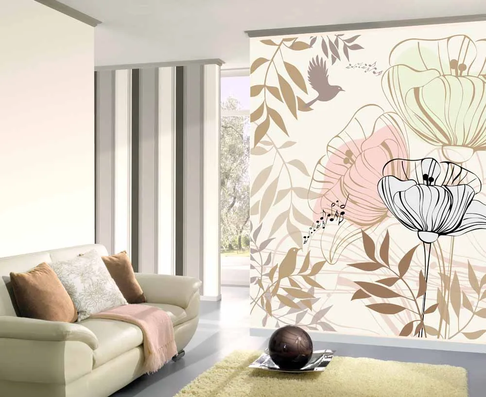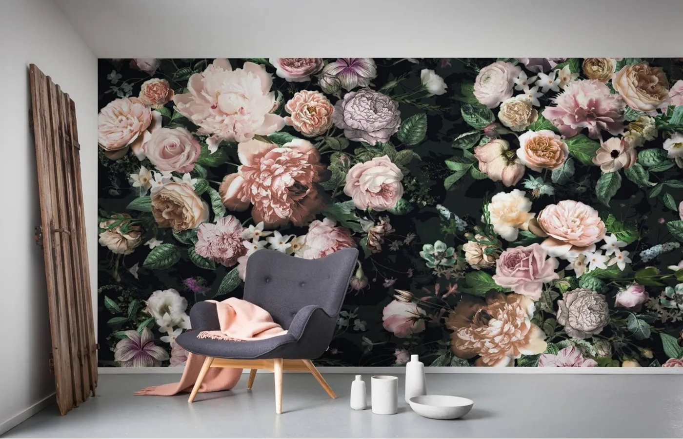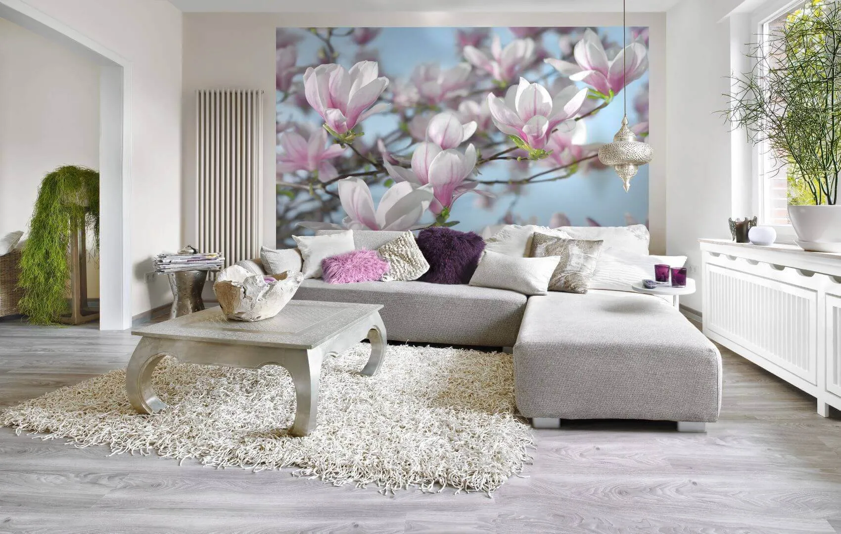 Стволы белых берез, голые и без листьев, прекрасно подойдут для комнат любителей скандинавского стиля. Если вы любите элегантность, вам понравится цветочный узор в стиле барокко.