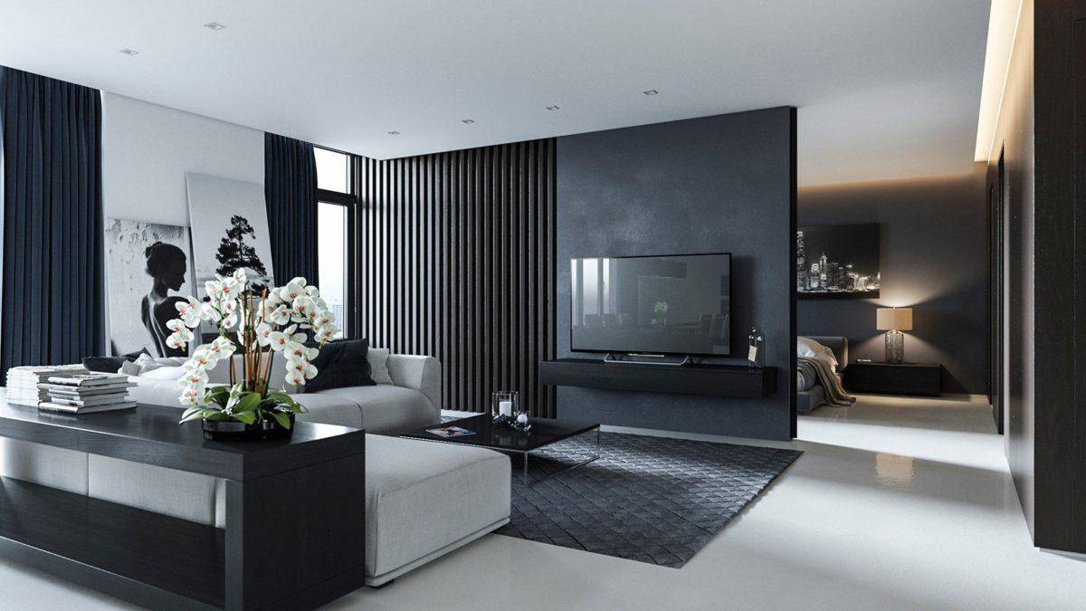 Отделка стен в черном цвете требует особого подхода. Этот вариант допустимо использовать в больших, светлых помещениях. В противном случае комната будет выглядеть слишком мрачной.