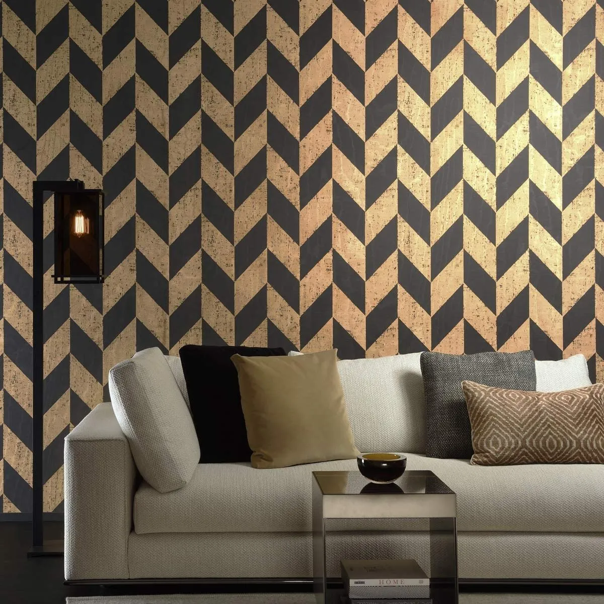 Современные обои в зигзагах, квадратах, треугольниках рекомендуются профессионалами для гостиной в 2022 году. Эффект от их использования вы можете оценить, посмотрев реальные фото.