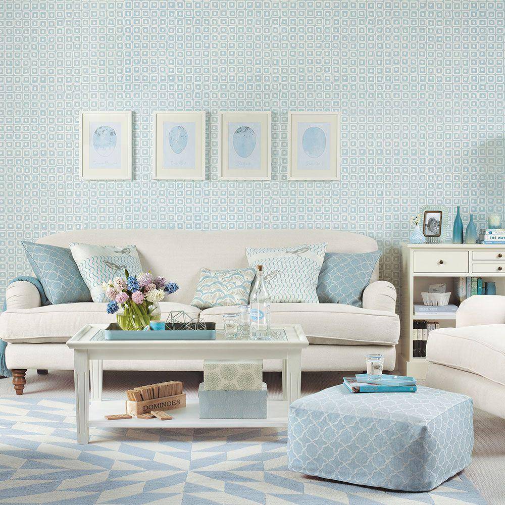 Настенные обои с принтами, изображающими структуру дерева или камня, особенно подходят для гостиной в деревенском стиле. С другой стороны, в гостиной в стиле прованс луга придают интерьеру романтический настрой, особенно в сочетании с панелями (белого, голубого или лавандового цвета), которые в последнее время снова входят в моду.