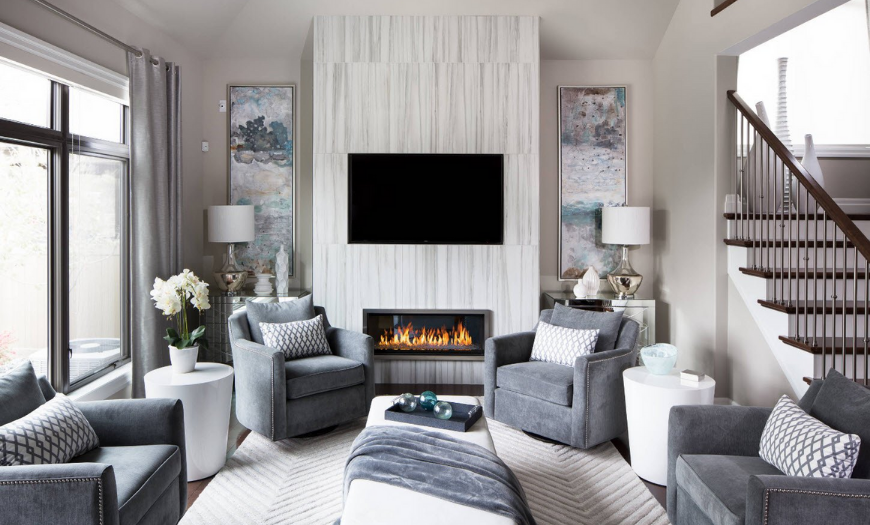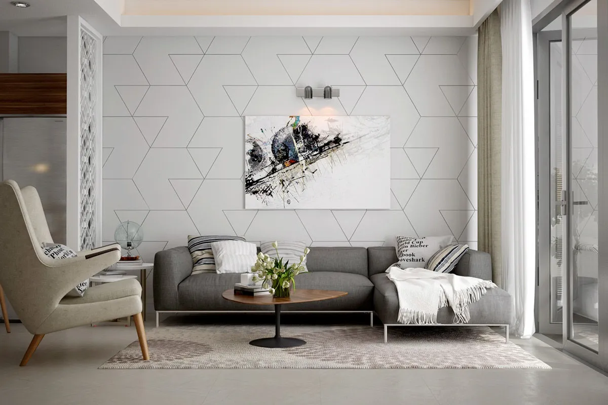 Нейтральная цветовая гамма подходит для гостиных в скандинавском или минималистском стиле. К тому же такая палитра допускает разводки как теплых, так и холодных оттенков.