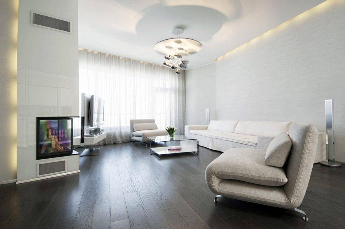 Стиль не диктует жестких канонов, а сама гостиная не требует такого специфического подхода, как, например, кухня или прихожая. Дерево и ламинат, камень и акрил, эмаль и бумажные обои – любые традиционные или инновационные материалы будут уместны.