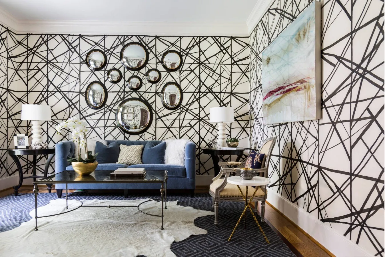 Здесь можно использовать обои с геометрическими узорами, абстракцией или оригинальными рисунками.