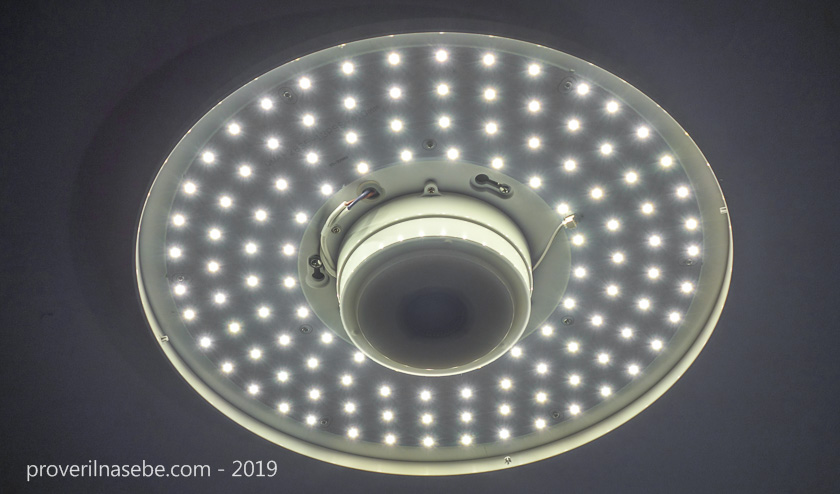 Увы, плафон все испортил. Как я уже писал, светильник тускловат даже для комнаты в 12 квадратов, не говоря уже о заявленных пятнадцати. И вообще, если вы никогда не сталкивались со светодиодными светильниками, не стоит так уж слепо верить тому, что написано на коробках. Думаю, заявленные на коробках площади освещения, стоит сразу уменьшать на треть. А лучше – вообще вполовину.