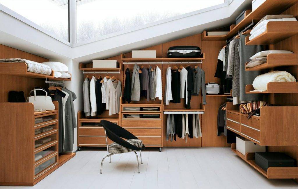 Если в комнате есть свободный угол, то можно обустроить место для вещей там. Это очень оригинальное решение, в этом случае комната с одеждой может стать изюминкой в интерьере. В этом случае также придется установить перегородки.