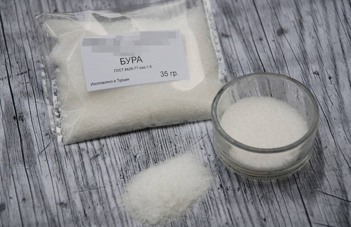 Сначала поверхность пылесосят для предотвращения распространения спор по воздуху. Стакан буры размешивают с 2.5 литрами воды. Инструментом нанесения раствора выбирают щетку с жёсткой щетиной. Слой должен полностью просохнуть, его не смывают.