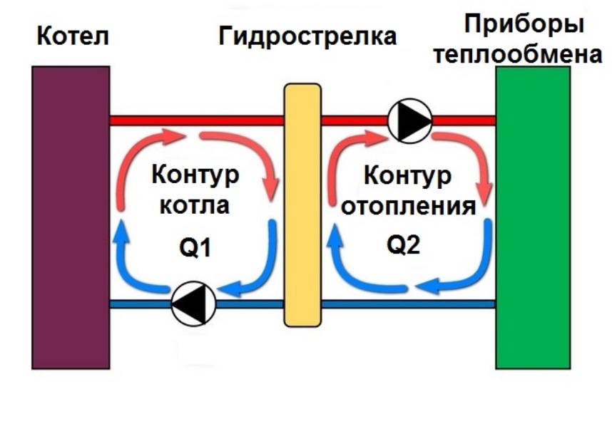 При установке гидрострелки появляются два взаимосвязанных контура, способные функционировать практически без взаимной зависимости.