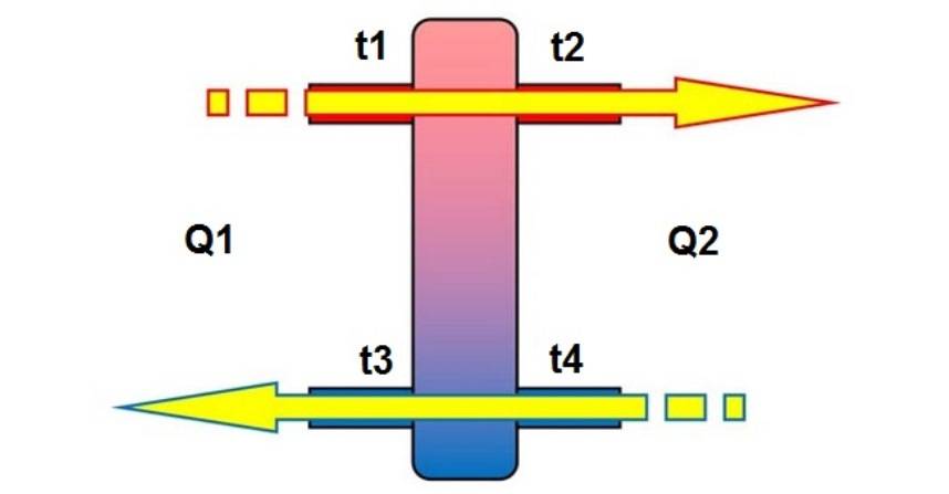 Та же самая ситуация происходит и с холодным потоком воды или воздуха, который не нагревается заново, оставаясь холодным до открытого режима. Эти жидкости не смешиваются и не передают друг другу тепло, циркулируя строго по своему контуру.