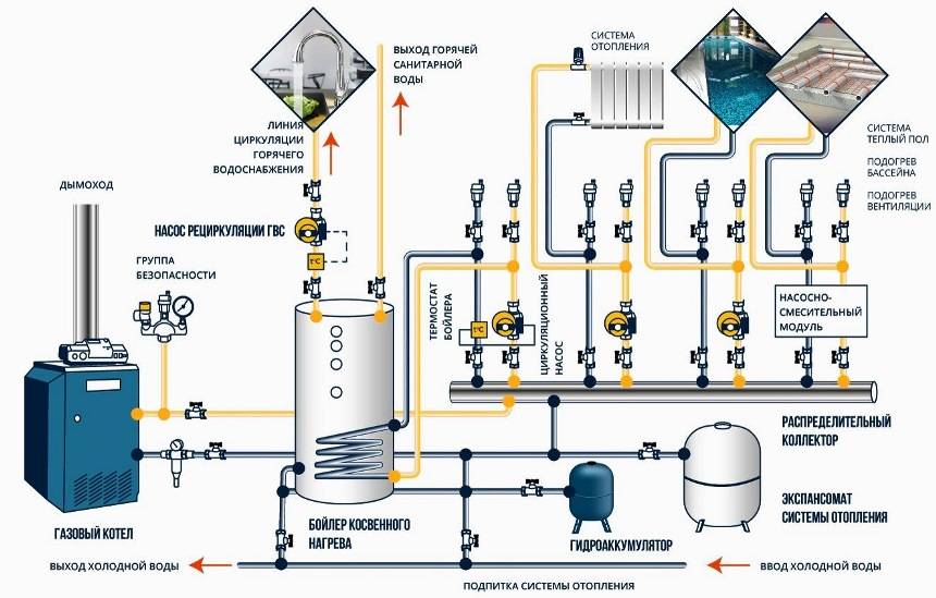 Одноконтурные системы отопления, в принципе, не удовлетворяют потребностям, возникающим в довольно больших жилых домах. В результате приходится прибегать к созданию систем многоконтурных. Например, могут обустраиваться контуры для: