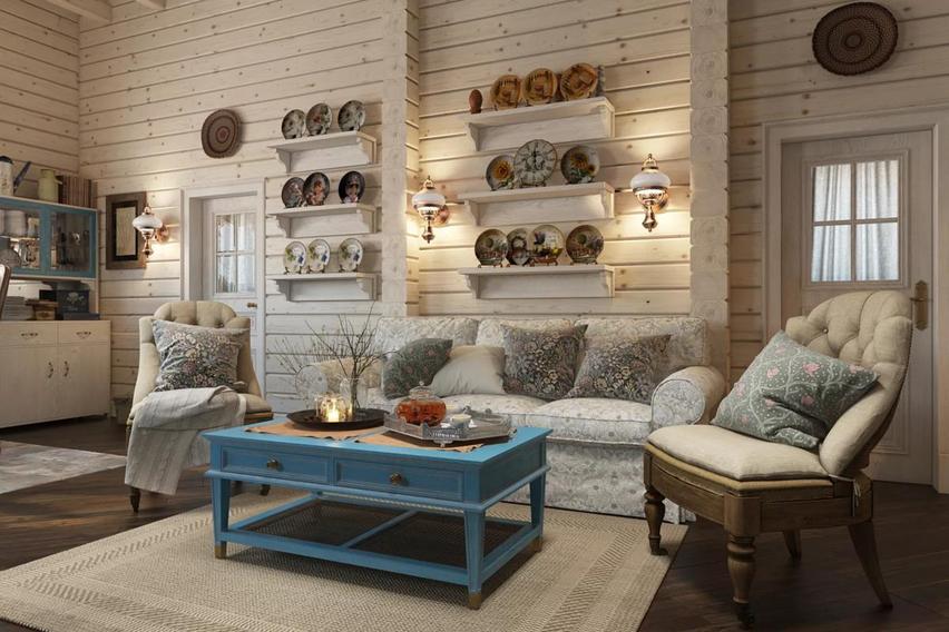 Гостиная комната в деревенском стиле – дизайн интерьера