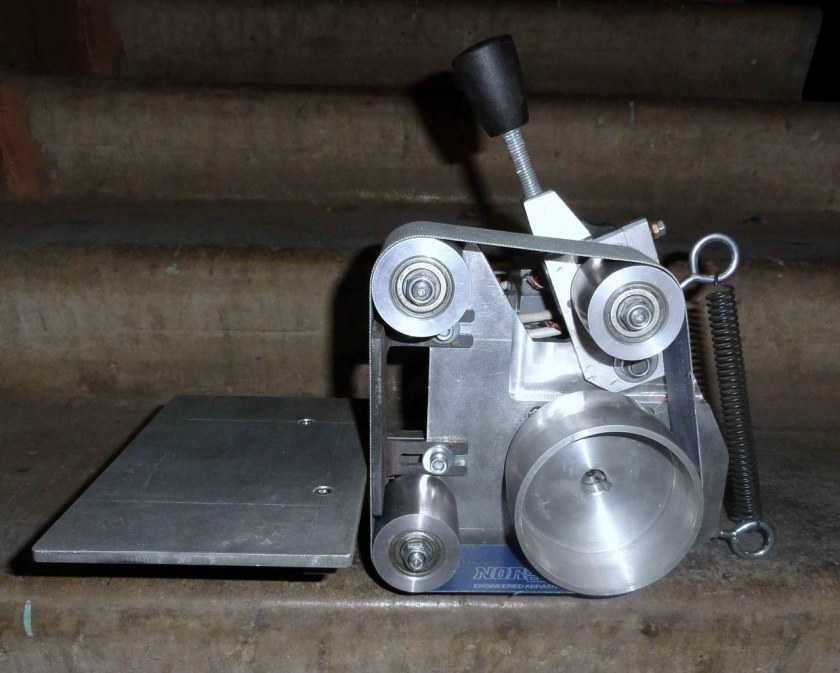 У ленточного гриндера всегда можно увидеть пружину, которая необходима для того, чтобы обеспечивать автоматическое натяжение ленты-наждака. Если использовать такую пружину, то менять ленту будет очень удобно, а ее натяжение будет регулироваться автоматически. Следует сразу сказать, что менять ленту даже при обработке одного изделия необходимо будет несколько раз. Обработку любой металлической детали необходимо начинать с лентой с более крупным абразивом, постепенно меняя ее на более мелкую.