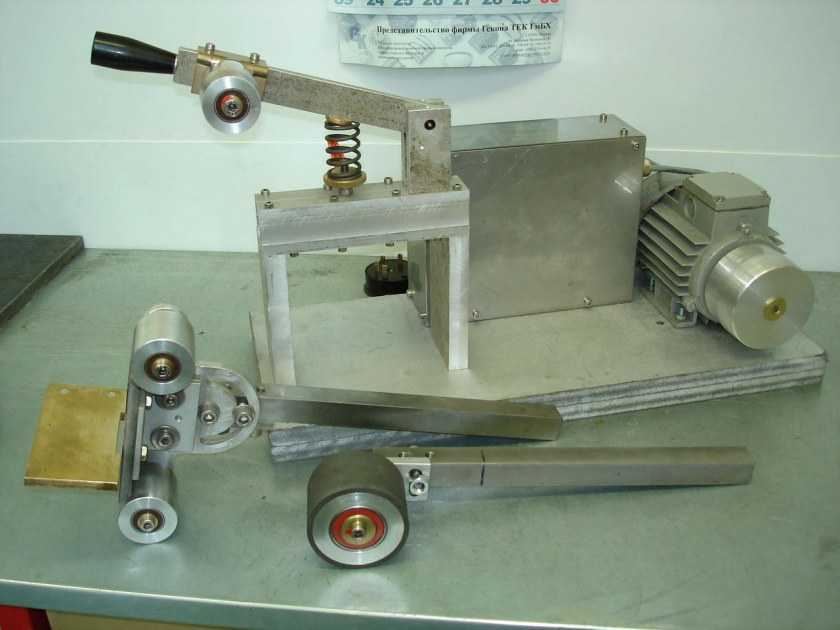 Через них пропускается лента, имеющая абразивный слой для шлифовки заготовок. В результате лента движется, что делает возможной работу за таким станком.