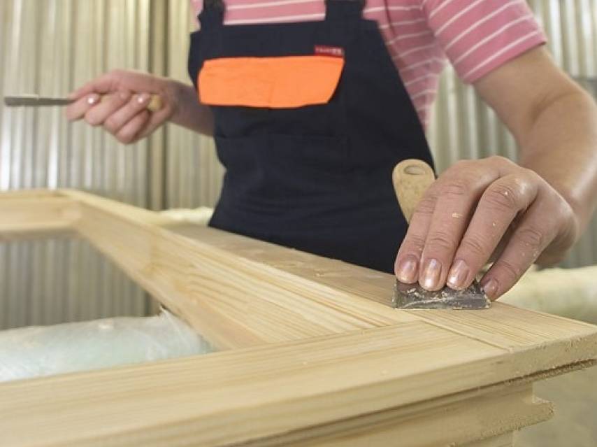 Существует большое количество составов для шпаклевки дерева. Все зависит от вида дерева и от того чем оно будет покрываться. Если это лакирование, то лучше всего подойдет смесь, сделанная собственными руками, из клея ПВА и деревянных опилок. Самодельная шпаклевка, после высыхания клея, окрашивается в тот же цвет, что и дерево. Она достаточно прочная и ее легко шлифовать.