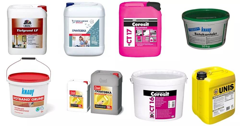 В продаже имеется большой ассортимент грунтовок. Отличаются они друг от друга не только брендом производителей, но и основой, на которой создана смесь: