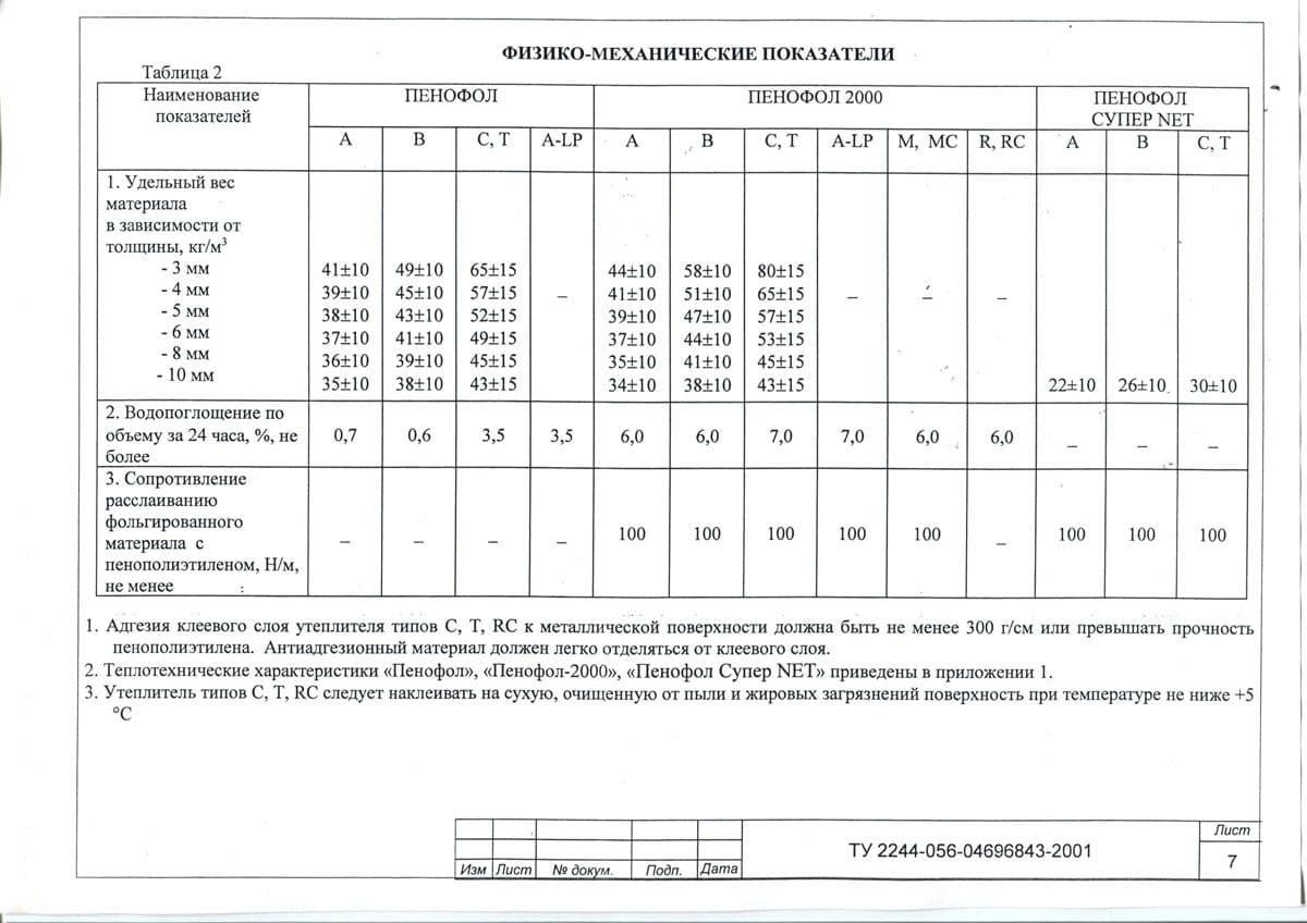 | ПЕНОФОЛ 2000 | В | 3 | 6,6 | 6,9 | 0,42 | 1200 | 30 | 36 | 0,212 |