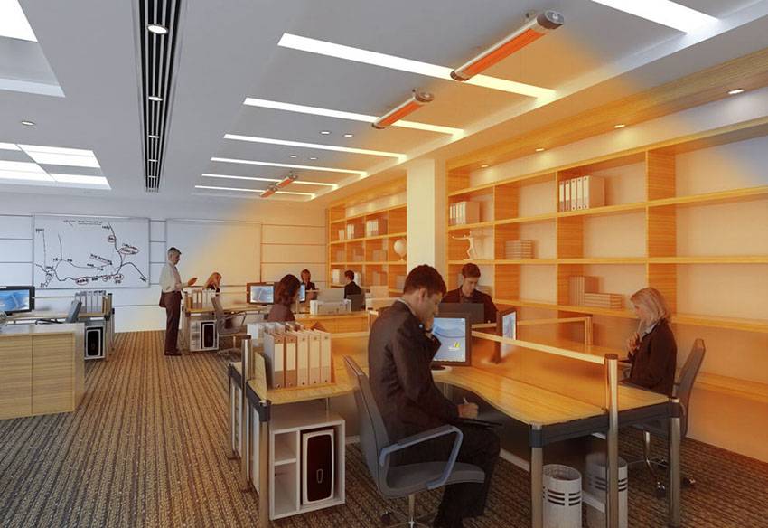 - Промышленные ИК обогреватели. Эти приборы используют для отопления производственных и служебных помещений.