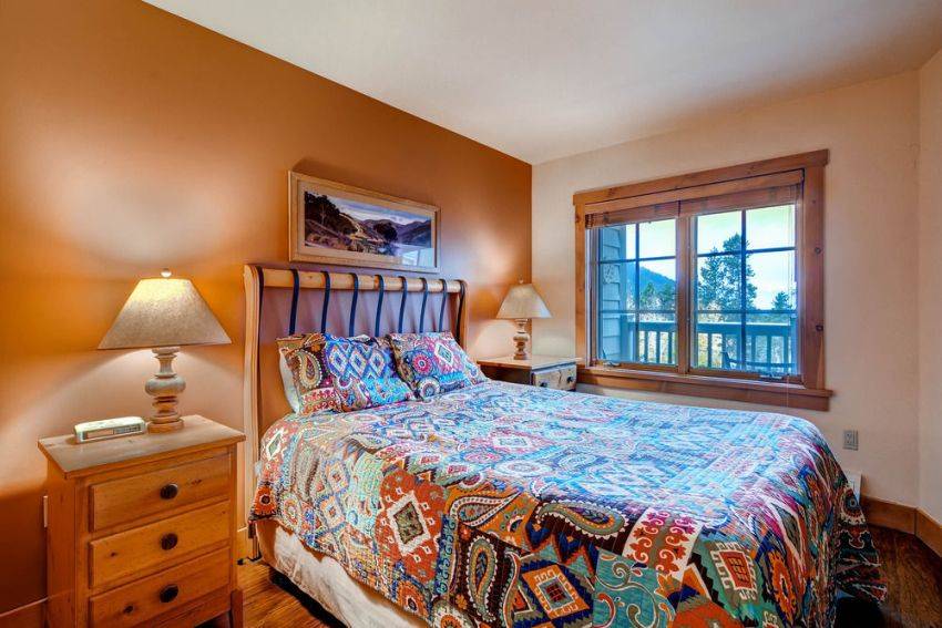 Настольные лампы с каждой стороны кровати позволят использовать их при необходимости