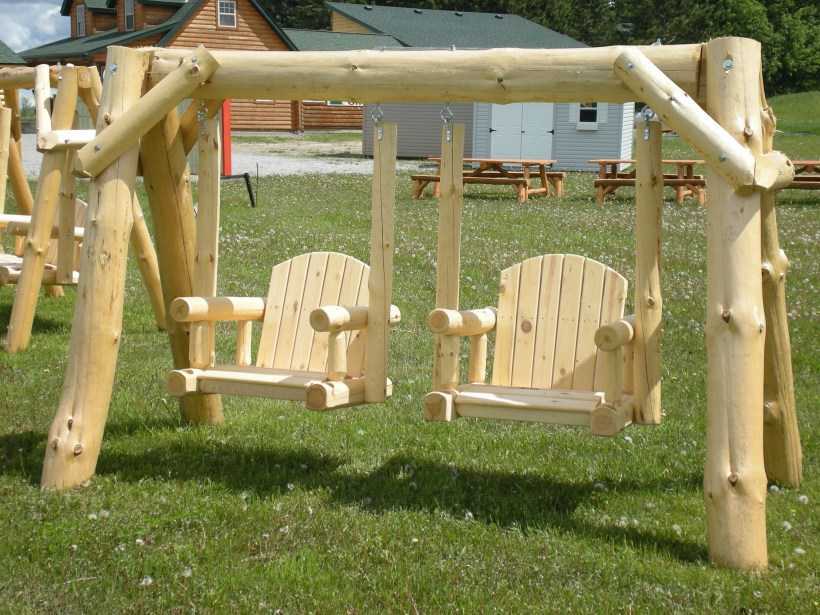 Большинство качелей из брёвен выглядят однообразно, но, среди них есть оригинальные модели, которые выделяются из общей массы.