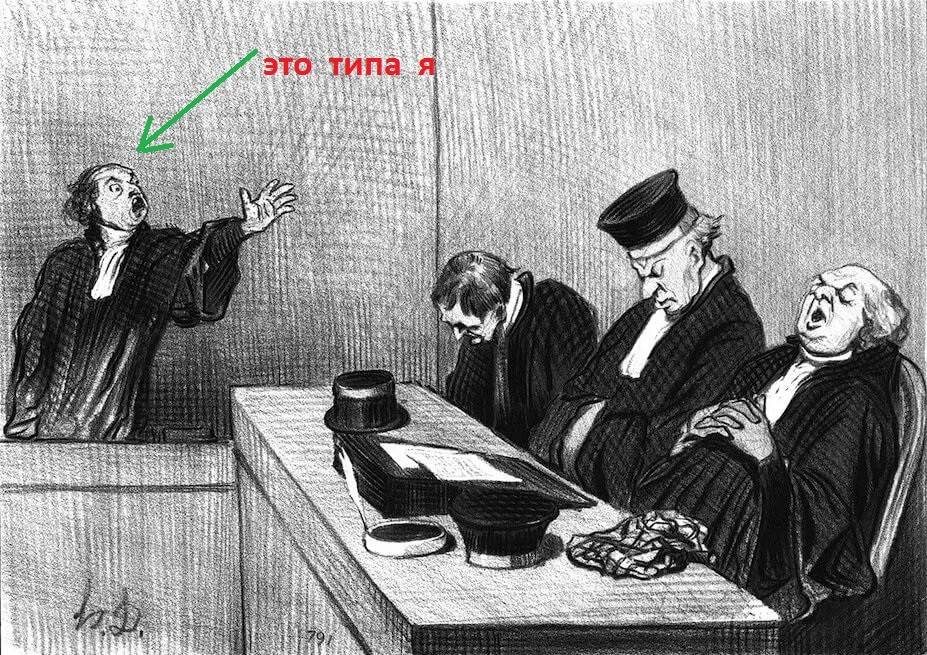 По-моему, вниманием председательствующего мне удалось завладеть лишь на мгновенье, когда я в ходе выступления сказал, что судья первой инстанции в ходе судебного разбирательства сказала: «Не понимаю вообще ничего…Ничего не поймешь» и это есть на аудиозаписи. После этого судья-председательствующий с удивлением взглянула на судью-докладчика и тот покивал головой — мол все правильно, действительно есть на аудиозаписи