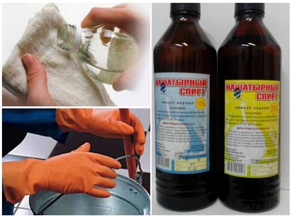- нашатырный спирт. Его разбрызгивают из пульверизатора, чтобы удалить известковый налет, ржавчину;