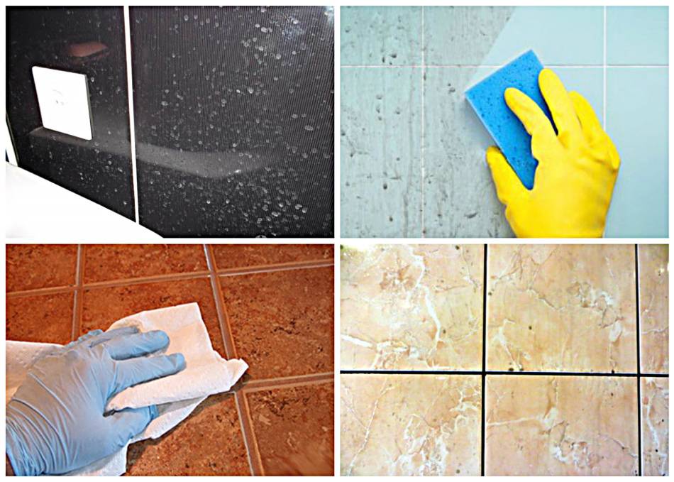 Мыльный налет. Его возникновению способствуют остатки несмытых до конца шампуней, гелей для душа и т.п. Мыльный налет притягивает на себя частички пыли, что придает плитке неприглядный вид.