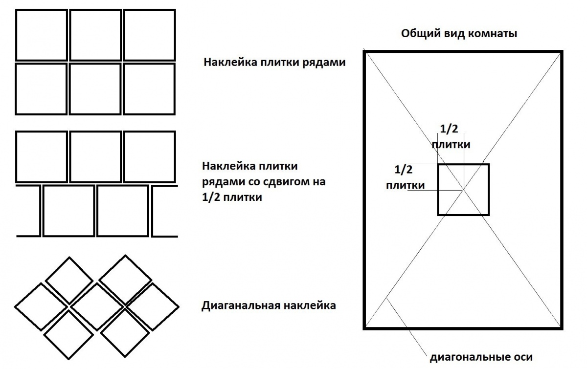 Существует два основных варианта облицовки потолочной поверхности: параллельный и диагональный. При параллельном способе плитка укладывается квадратом от центра, параллельно стенам. При диагональном способе – от центра по диагонали под углом 45 градусов.