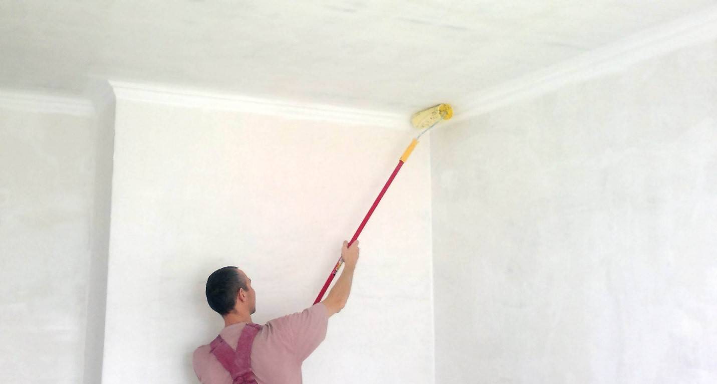 - очистка поверхности от старой отделки. Обязательно нужно удалить шпателем вздутия старой краски или отслоившуюся побелку, а после помыть потолок;