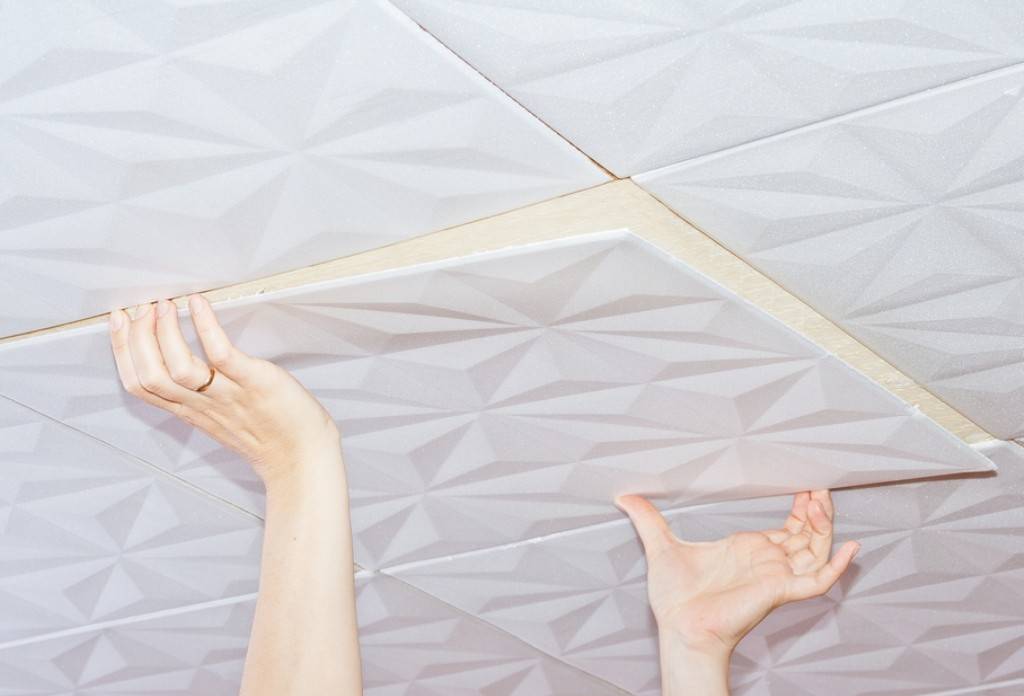 Чтобы зафиксировать потолочную плитку на кривом потолке, сначала следует очистить поверхность от старой облицовки и по мере возможности выровнять.