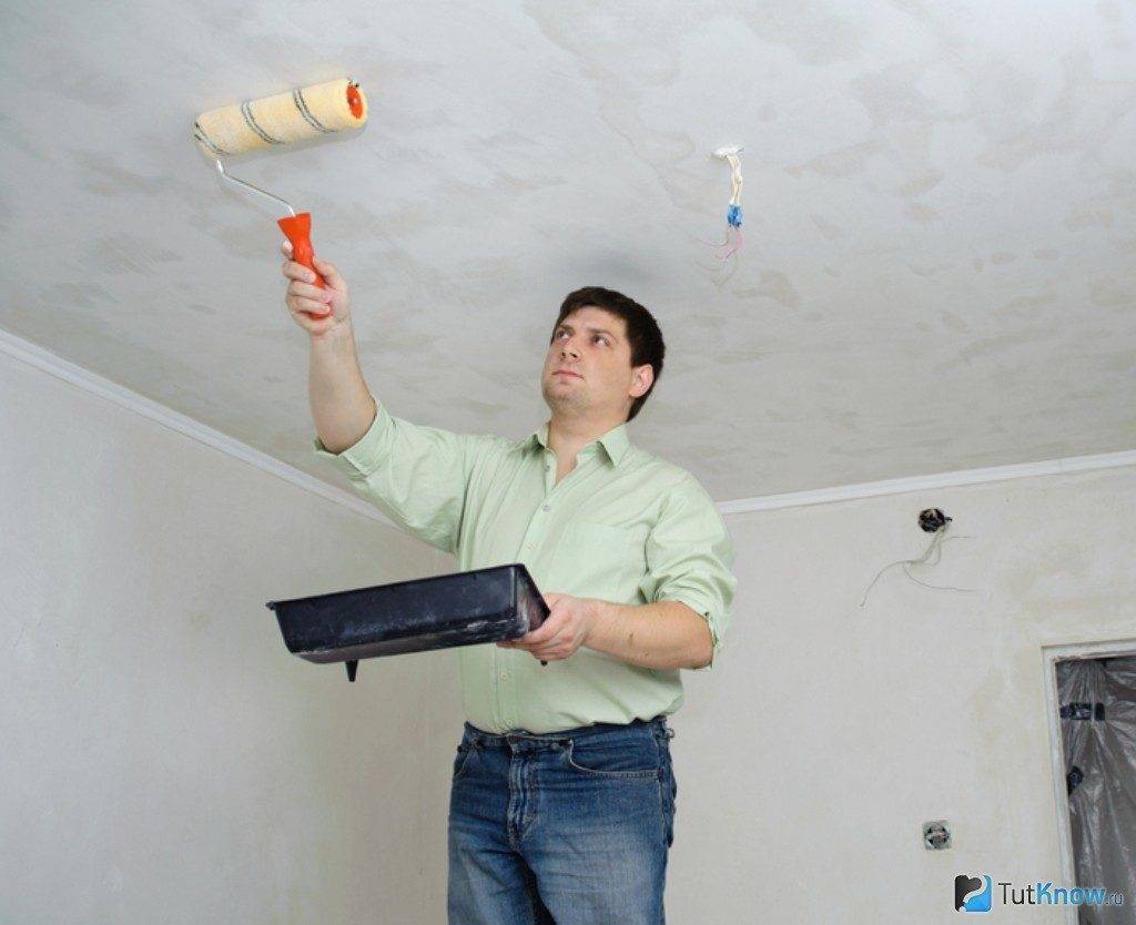 Поверхность грунтуется дважды валиком. Стыки со стенами и сложные места обрабатываются кистью. Второй слой наносится на полностью высохший первый.