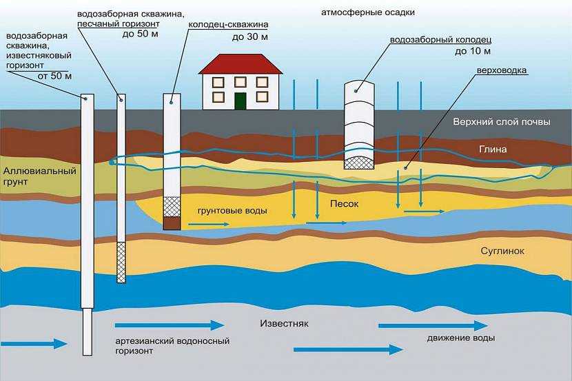 При поиске воды всегда стоит помнить, что пласт воды может залегать на разной глубине от поверхности земли. При этом, чем ближе будет жила к верху грунта, тем менее качественной будет вода. К примеру, самыми близко расположенными водоносными слоями являются жилы на глубине залегания 2-3 метра от поверхности земли. Такие грунтовые воды называются верховодка. Отрицательные стороны грунтовой верховодки в том, что такая жила подвержена влиянию сезонной или сточной воды. Выпавшие снега и дожди, отведенные стоки канализации в септик, возможное заболачивание местности — все это достигает верховодных грунтовых вод, насыщая их химикатами, которые попали в осадки и стоки. Таким образом, верховодная вода не пригодна к употреблению в большинстве случаев.