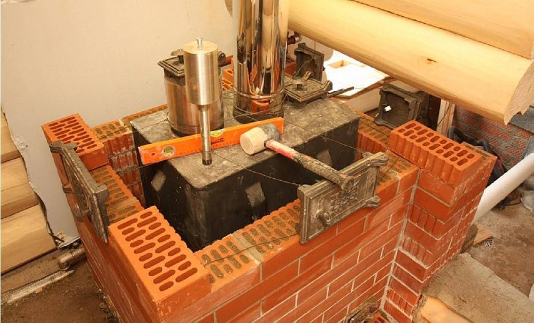 Прежде чем переходить к кладке, нужно убедиться, что пол в бане выдержит подобную нагрузку. Кирпичи, тем более полнотелые, весят достаточно много, поэтому после кладки печь станет оказывать высокую нагрузку на основание.