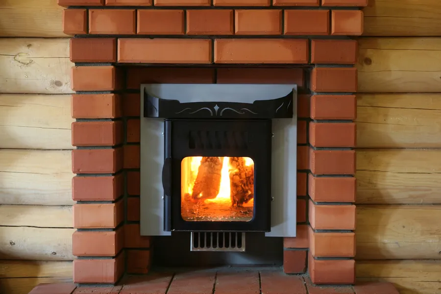 Кирпичный экран устанавливают не впритык к стенкам печи, оптимальное расстояние – 5-15 см. Приемлемое расстояние от кирпичной кладки до возгораемой стены – 5-15 см. Таким образом, использование кирпичного экрана позволяет уменьшить расстояние от печи до деревянной стены до 22-42 см (печь — вентзазор 5-15 см – кирпич 12 см – вентзазор 5-15 см — стена).