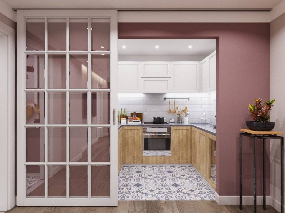 Если без дверей все же невозможно, (например, в квартирах с газовой плитой иметь открытый проход из кухни запрещено законом) выбирайте раздвижные дверцы — они сохраняют место, да и выглядят стильно и современно.