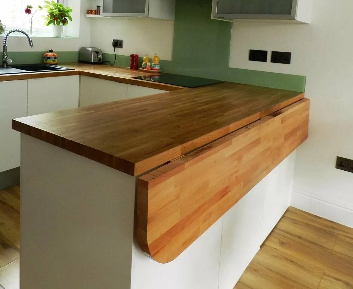 И, наконец, существует модульная мебель — шкафы прячутся под крышку — откидную столешницу, а вы выкатываете их, если понадобится больше рабочей поверхности.