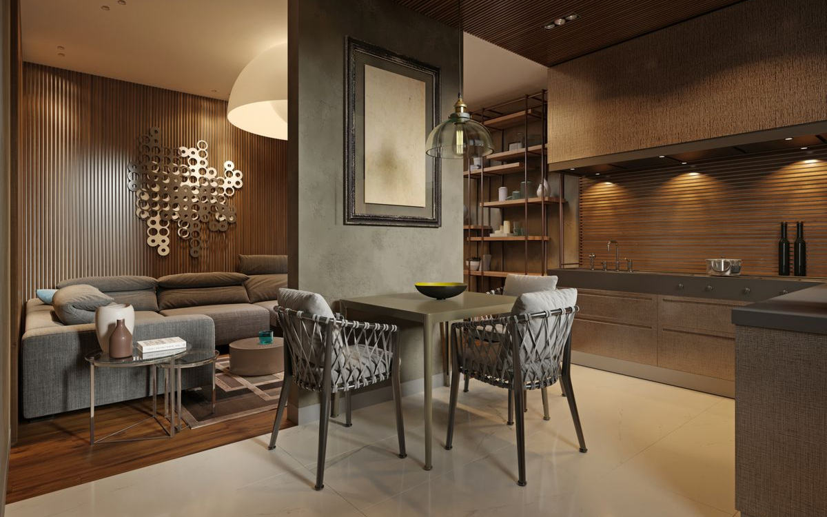 - Раскладывающийся стол или барная стойка помогут оптимизировать пространство в обеденной зоне.