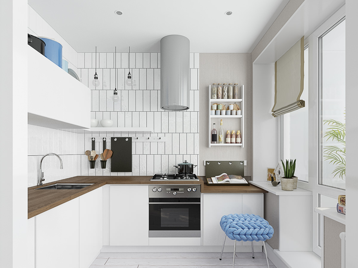 Если есть возможность согласовать перепланировку по присоединению лоджии к площади маленькой кухни, то стоит ей воспользоваться. Так удастся выделить место для обеденной зоны, барной стойки или небольшой зоны отдыха.