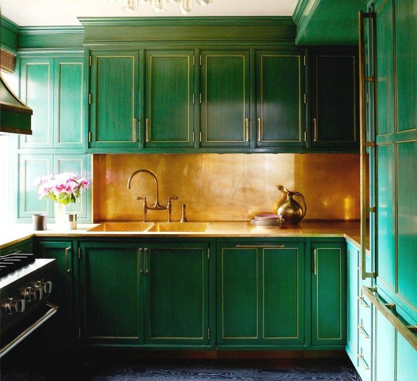 Зеркальный фартук – достойное решение для ар-деко, изначально рассчитанного на эпатажную демонстрацию роскоши. Вообще сильно отражающие материалы можно использовать в любой маленькой кухне. Ведь они создают дополнительную перспективу, отчего комната кажется вдвое просторнее.