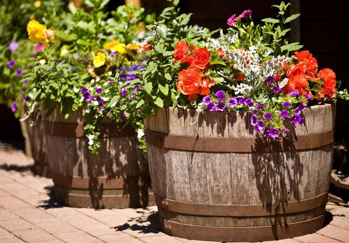 Выбирают подходящее возвышение и слегка раскапывают его вершину. Укладывают бочку или ведро на бок и хорошенько прикапывают, чтобы емкость не сдвигалась. Внутри выстилают дно мульчирующей пленкой и насыпают грунт. Склон, расположенный у отверстия бочки, тщательно рыхлят, очищают от сорняков и тоже присыпают цветочным грунтом. Когда земля уляжется, можно высаживать низкорослые цветы.