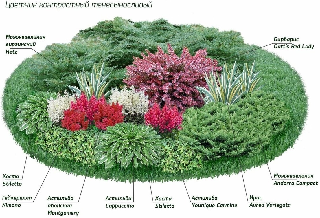 - постоянная зелень — такие цветники радуют взор хозяина участка в течение всего сезона;