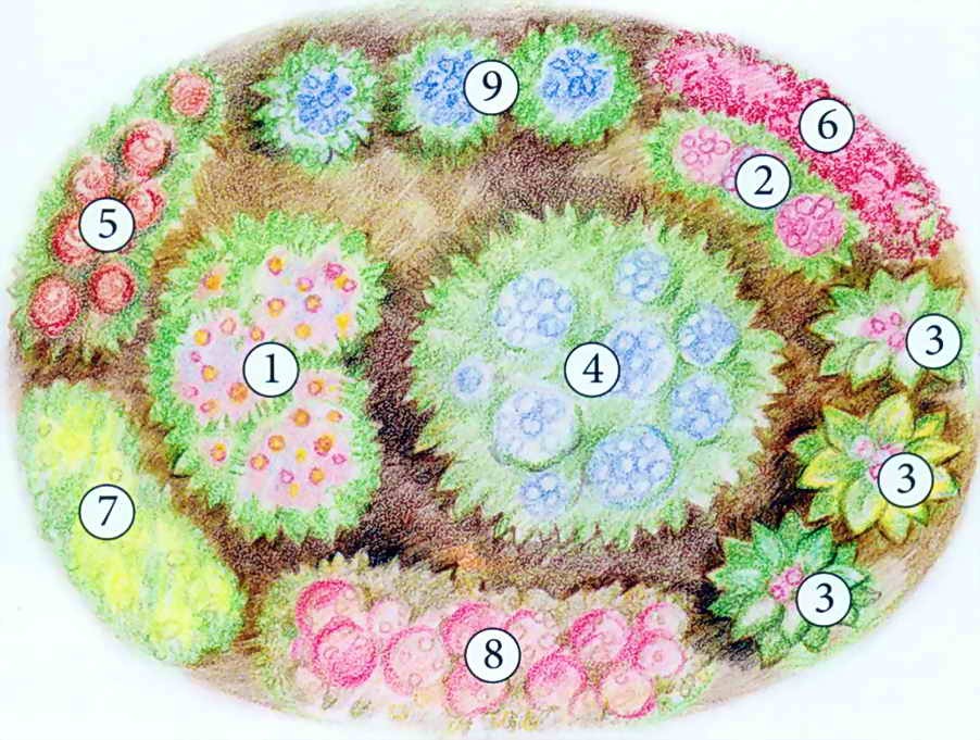 - Подбирая растительность, учтите высоту растений и разрастаемость кустов, что бы цветы в будущем не мешали друг другу расти. В противном случае вам будет необходима пересадка уже через год;