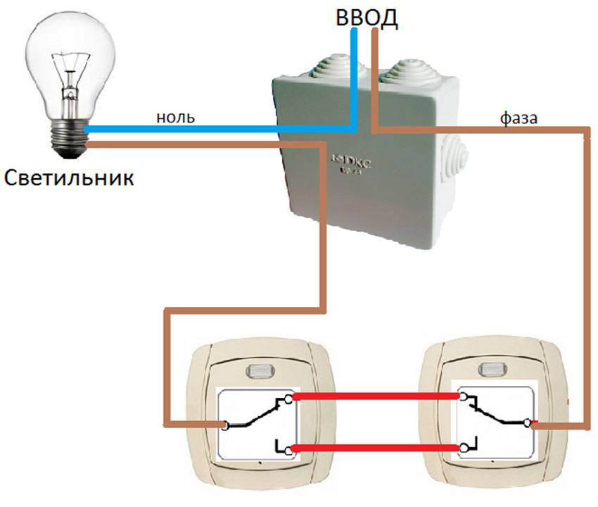 Порядок установки проходных выключателей на 2 точки: схема подключения