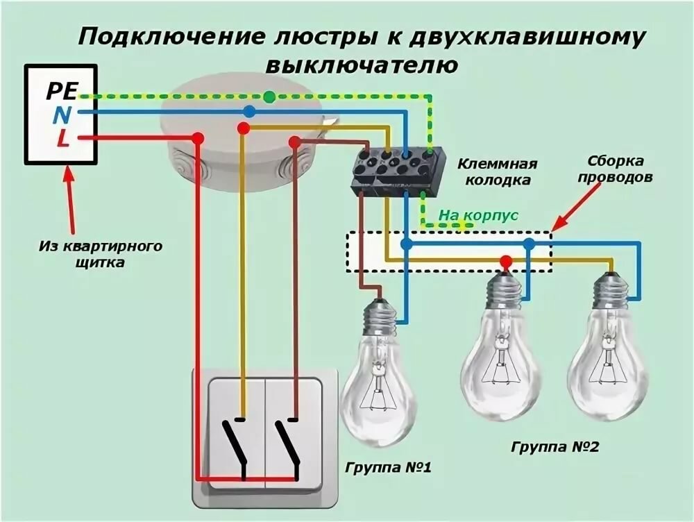 Установка именно двухклавишного бытового выключателя применяется в следующих случаях: