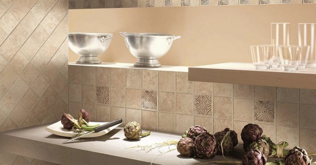 Производители предлагают коллекции под любой стиль интерьера. При выборе стоит учесть, что крупные рисунки будут скрадывать пространство. Для маленькой кухни лучше выбрать светлую керамику с глянцевым покрытием. При низких потолках – преимущество у вертикальной полоски, которая поможет визуально увеличить высоту в помещении. Если гарнитур с яркими фасадами, то лучше заказать однотонный материал.