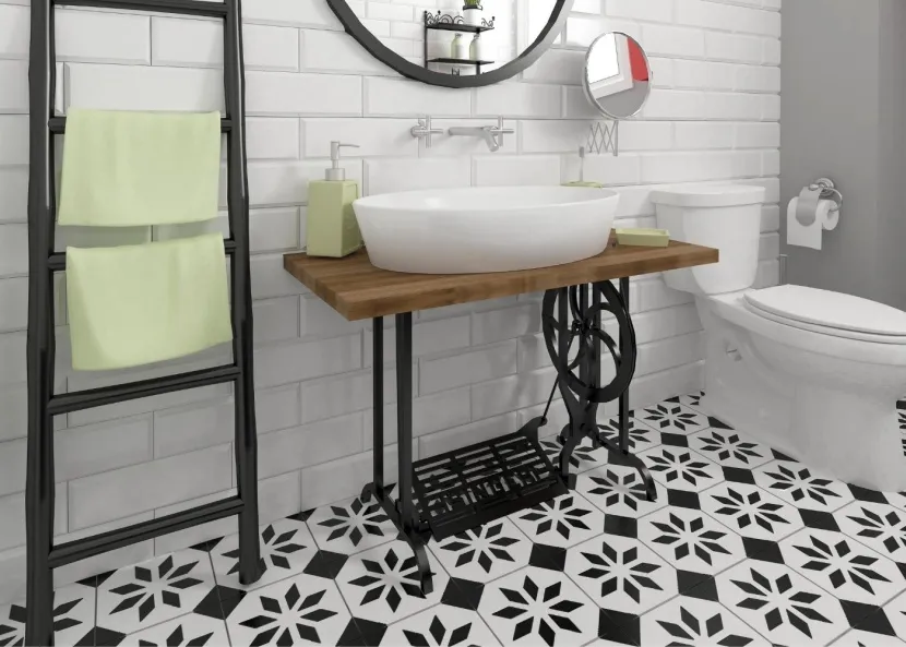 Белая плитка с черной или темной затиркой выбирается в следующих случаях: