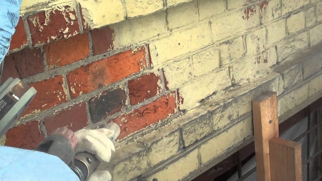 - Используя металлическую щетку, очищаем хорошо все швы. Если при этом вы обнаружите большие углубления или пустоты, то следует их заделать цементным раствором. Наносить раствор следует очень аккуратно, чтобы не испачкать лицевую поверхность кирпича.