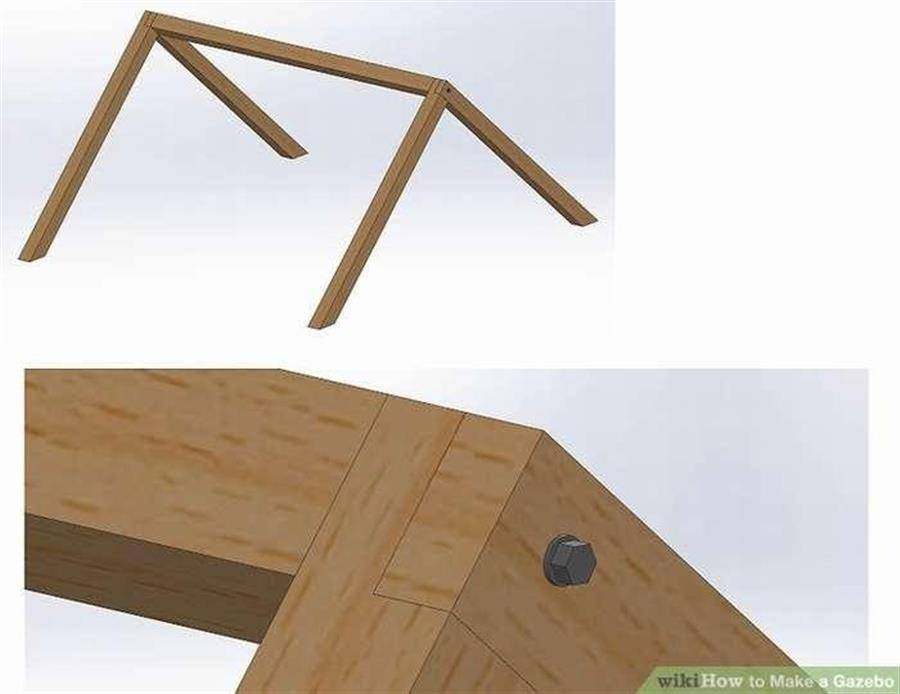 Ставят столбы. В беседке эконом-класса своими руками их устанавливают по углам и соединяют между собой верхней обвязкой (перпендикулярно идущими деревяшками, которые не дают столбам разъехаться). Столбы крепят металлическими уголками или вставляют в предварительно выпиленные на углах нижней обвязки отверстия. Если беседка будет со сплошными стенами, то еще 1 или 2 столба ставят на месте боковых сторон входа. Столбы спереди и сзади беседки лучше делать разной длины, чтобы крыша получилась наклонной. Тогда с нее будет стекать вода.
