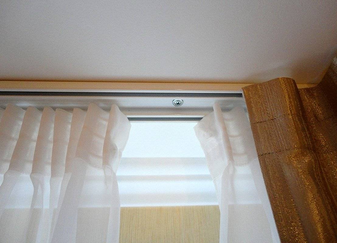 Натяжной потолок не предполагает закрепления каких-либо элементов на натянутом полотне, поэтому установка держателя для гардин выполняется особым образом: